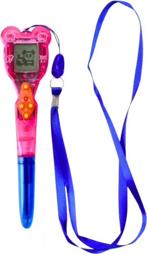Pero píše modrým inkoustem, takže je ideální pro školu i domácí poznámky. Součástí je šňůrka na zavěšení pro bezpečné nošení a baterie AG13 v balení, takže zábava může začít hned po rozbalení.