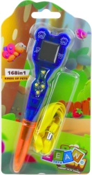 Elektronické pero s vestavěnou herní konzolí kombinuje užitečný psací nástroj a kapesní zábavu. Děti si mohou vybírat z 168 různých miniher, takže o zábavu je postaráno kdekoli – doma, ve škole i na cestách. Pero píše modrým inkoustem a díky přiložené šňůrce ho lze pohodlně nosit na krku.