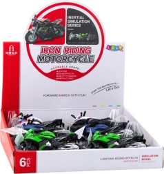 Sportovní motocykl pro děti se setrvačníkovým napájením pohybu, realistickými světelnými a zvukovými efekty a pevnou konstrukcí. Skvěle vypadá, snadno se ovládá a díky bateriím 3× AG13 (v balení) je připraven k jízdě hned po vybalení. Barva je dodávána náhodně.