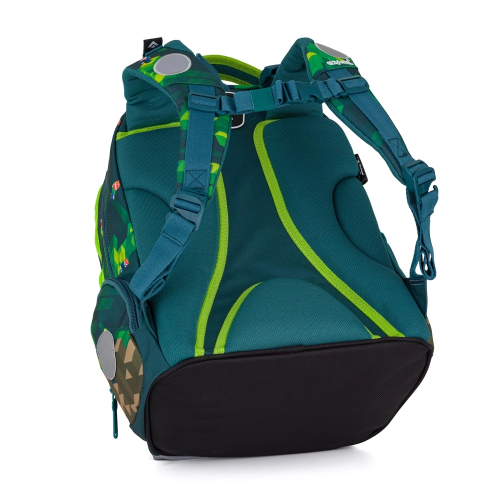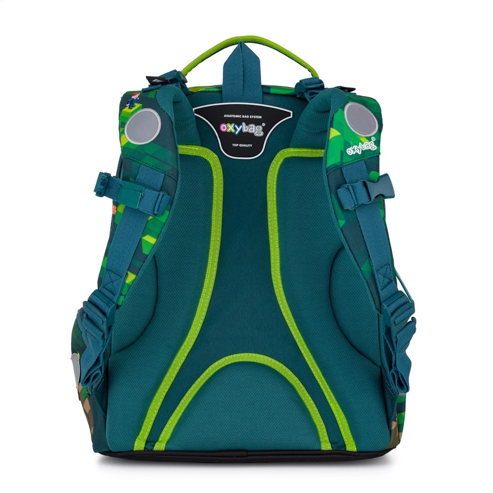 OXY GO Playworld je promyšlený školní batoh, který kombinuje pohodlí, bezpečnost a atraktivní design. Perfektně sedí na zádech díky anatomicky tvarovanému a prodyšnému zádovému panelu, jehož délka je 39 cm. Nastavitelné ramenní popruhy doplňují přídavné háčky pro uchycení delších konců, takže nic nepřekáží při chůzi.