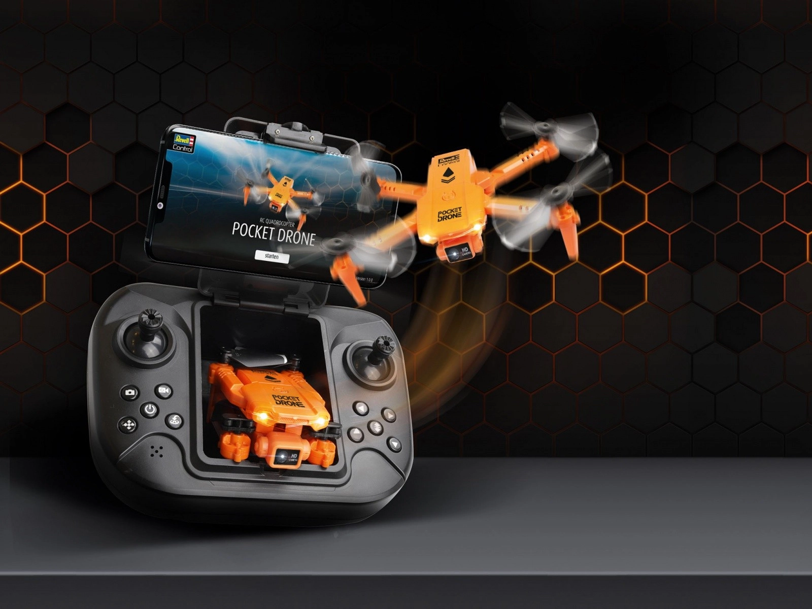 Kapesní dron REVELL Control přináší velkou porci zábavy v malém těle. S délkou 110 mm, šířkou 134 mm a výškou 35 mm se pohodlně vejde do přihrádky v ovladači a je vždy připraven k letu. Vestavěná kamera 720p přenáší základní snímky a video živě do vašeho smartphonu, takže svět uvidíte z nové perspektivy.