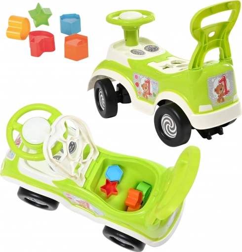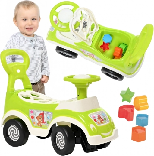 Hledáte hračku, která spojí zábavu a učení? Toto zelené jezdítko WOOPIE 4v1 nabízí jezdítko, pchací chodítko, chodítko s opěrkou a vzniklý sorter tvarů v jednom. Má schovku pod sedátkem, stabilní konstrukci, bezpečné zaoblené hrany a klakson pro ještě větší radost z jízdy. Ideální pro děti od 18 měsíců na doma i ven.