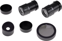 - Zenitové zrcátko, membránový filtr (pro bezpečné pozorování Slunce), hledáček, držák na telefon, miska na příslušenství, kryt okuláru