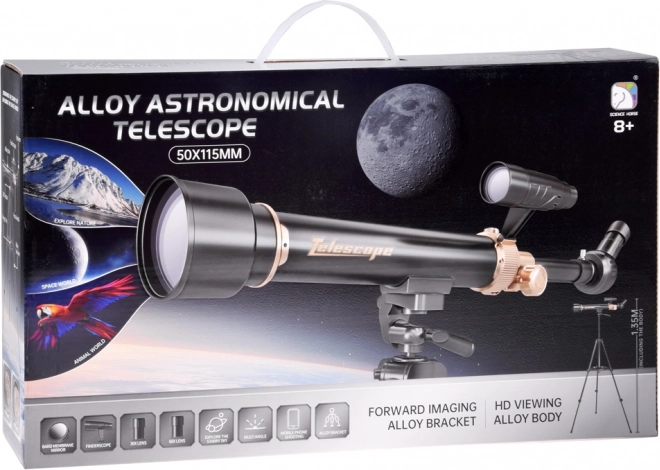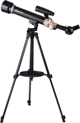 Začněte s objevováním vesmíru s tímto univerzálním astronomickým teleskopem. Nabízí zvětšení 30x a 60x, ohniskovou vzdálenost 500 mm a stabilní hliníkový stativ 1,3 m. V balení najdete kompletní sadu příslušenství včetně okulárů, hledáčku, zenitového zrcátka a držáku na telefon. Součástí je také speciální membránový filtr pro bezpečné pozorování Slunce.