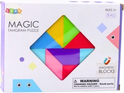 - 9 magnetických dílků tangramu, instrukce, samolepky, balení