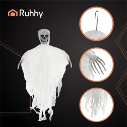 Vytvořte si domácí „haunted house“ během chvilky. Tato závěsná bílá kostra RUHHY vyniká realistickým vzhledem a lehkým provedením, takže ji snadno zavěsíte kamkoli potřebujete. Potrhaná látka se při sebemenším závanu vzduchu pohybuje a dodává dekoraci mrazivý, živý efekt.