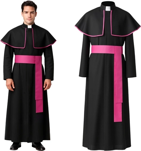Součástí setu je dlouhá černá sutana s kolárkem, pelernka s lemováním a liturgický pas, které společně vytvoří výrazný a důstojný vzhled. Díky univerzálnímu rozměru XL/XXL se pohodlně přizpůsobí různým postavám a skvěle se hodí na Halloween, maškarní bál, tematické večírky i jeviště.