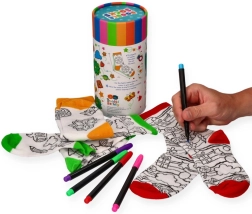 Proměňte obyčejné ponožky v jedinečný módní doplněk. Kreativní sada v elegantní tubě je ideální pro domácí tvoření, dárky i společné rodinné aktivity. Univerzální střih se pohodlně roztáhne a padne většině dětských nožek.