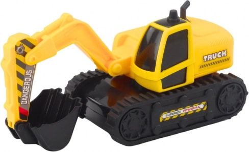 Tato detailně zpracovaná stavební souprava spojuje velký tahač s podvalníkem a realistický pásový bagr. Díky napájení Friction Power stačí vozidlo postrčit a samo se rozjede, zatímco podsvícené efekty a zvuky motoru, klaksonu či couvání dodají hře autentičnost. Sklopná zadní rampa na podvalníku umožní snadné najetí a sjetí strojů.