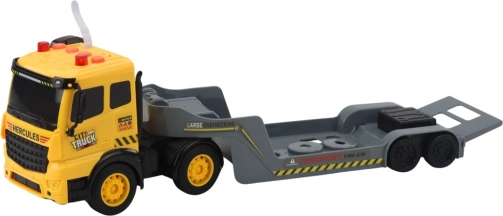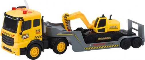 Nákladní auto s podvalníkem a pásovým bagrem 1:16, žluté