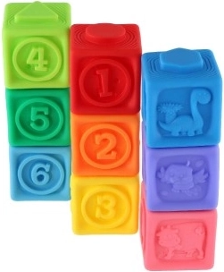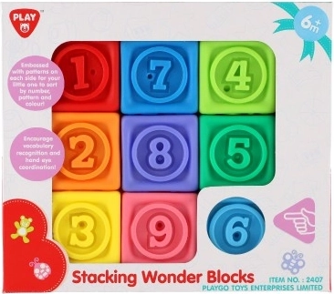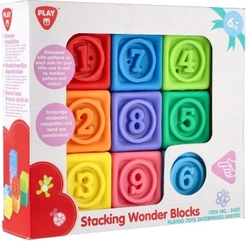 Reliéfní čísla na každé kostce podporují rané počítání a rozpoznávání čísel. Děti mohou skládat věže v číselném pořadí a učit se hrou.