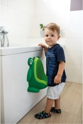 Praktický dětský pisoár FreeON Žabka je skvělý pomocník pro nácvik toalety pro chlapce od 6 měsíců. Díky přísavkám jej snadno připevníte na stěnu a jeho nastavitelná výška se přizpůsobí růstu dítěte. Otočný terčík motivuje k přesnému míření a vyjímatelná nádoba zajišťuje rychlé čištění. Odolný plast a zábavný design pomáhají k rychlejší adaptaci na samostatné používání toalety.