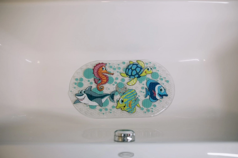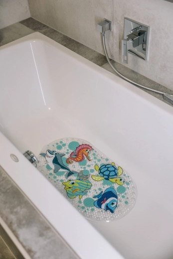 Instalace je snadná: pro perfektní přilnutí napusťte vanu vodou, podložku umístěte na dno a rovnoměrně přitlačte. Díky univerzálním rozměrům 69 × 39 cm se hodí do většiny van i dětských vaniček.