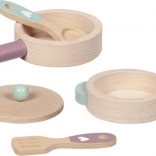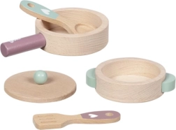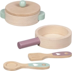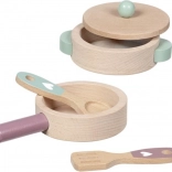Tato dřevěná sada na vaření potěší všechny malé kuchaře. Pánvička a hrnec s pokličkou jsou vyrobeny z odolného bukového dřeva, které snese i každodenní „kuchařské experimenty“. Díky pevnému zpracování a hladkým hranám je hra bezpečná a příjemná na dotek.