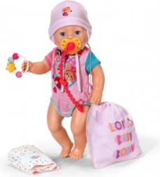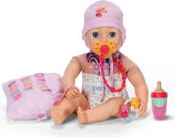 Kompletní sada doplňků pro péči o panenku BABY BORN ve velikosti 43 cm. Obsahuje lahvičku, čepičku, plenku, bryndáček, chrastítko, dudlík a řetízek na dudlík – vše v moderních barvách pro stylové hraní. Kouzelný dudlík u vybraných panenek pomáhá zavírat oči a lze jej dozdobit nacvakávacími ozdobami (nejsou součástí). Ideální pro role-play pečování a rozvoj jemné motoriky.