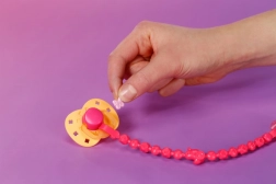 - Dudlík lze dozdobit nacvakávacími ozdobami (nejsou součástí)