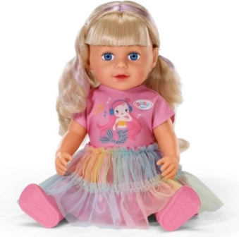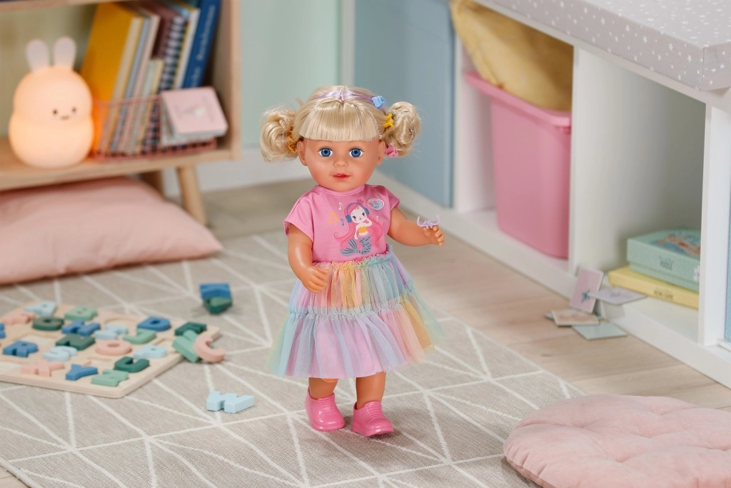 Díky skvělé pohyblivosti snadno hýbe rukama, otáčí hlavou a má ohebné kolenní klouby, takže ji lze pohodlně posadit i postavit. Pevné tělíčko umožňuje i hraní ve vodě, a tak si Carla užije koupací rituály ve vaně. Barevný outfit s duhovou tylovou sukní a růžovými botkami podtrhuje její hravý styl.