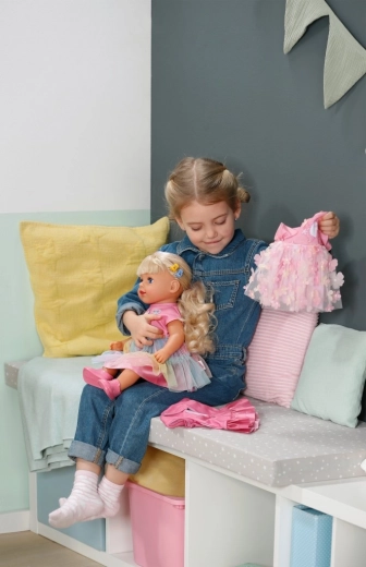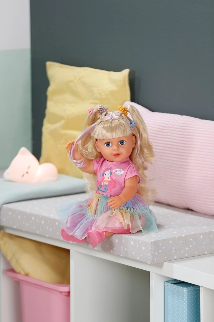 Panenka BABY born Carla přináší dětem spoustu možností pro kreativní hraní. Dlouhé a hebké nylonové vlásky jsou ideální pro česání, culíky i zaplétání copánků. Sada 7 doplňků – kartáč, gumičky a sponky – podpoří fantazii při každodenním stylingu.