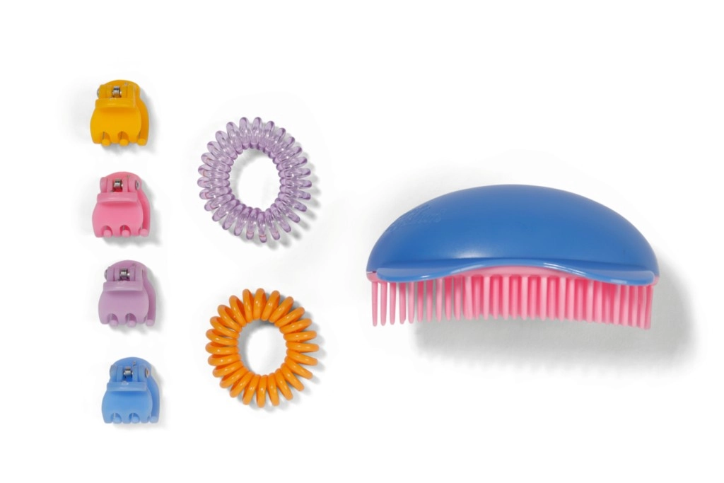 - 7 vlasových doplňků – kartáč, 2 gumičky, 4 sponky.