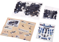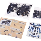 Tato technická stavebnice přenese malé motoristické nadšence do světa rychlých aut a chytrých mechanismů. Díky elegantní modro-bílo-černé barevnosti a přiloženým nálepkám si dítě vytvoří vlastní sportovní auto s originálním stylem.