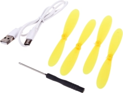 - RC motýlí dron, ovladač ve tvaru kouzelné hůlky, akumulátor 3,7 V 500 mAh, 4 náhradní vrtule, USB‑C nabíjecí kabel, šroubovák, návod v angličtině