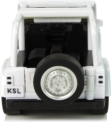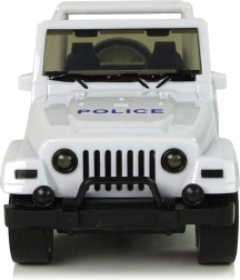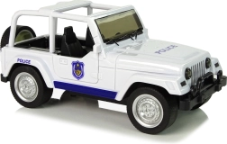 Staňte se strážcem zákona a vyrazte do akce! Bílé terénní policejní auto je perfektní volbou pro děti, které milují akci a dobrodružství. Kompaktní rozměry se hodí do dětské ruky, zatímco gumové pneumatiky a pull-back pohon zaručí zábavnou jízdu na krátké vzdálenosti. Auto má otevírací přední dveře, detailní interiér a modré policejní prvky s nápisem POLICE.