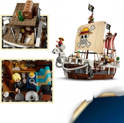 Součástí je pět minifigurek: Monkey D. Luffy (na galionu s ukrytým dělem), Zoro, Nami (u kormidla se svými mandarinkami), Usopp (na stěžni v bocmanově koši) a Sanji (směřující do kuchyně). Nechybí ani plakáty s hledanými a možnost rozšířit zábavu díky aplikaci LEGO Builder s 3D náhledy, otáčením modelu a sledováním postupu.