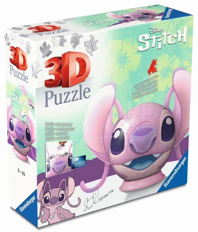 Tento 3D puzzle-ball s oblíbenou postavou Angel přináší jedinečný zážitek ze skládání. Plastové dílky s přesným tvarem do sebe snadno zacvaknou, takže stavba je rychlá, čistá a zábavná i pro začátečníky. Hotová koule se skvěle hodí jako dekorace do dětského pokoje nebo sbírky fanoušků Disney.