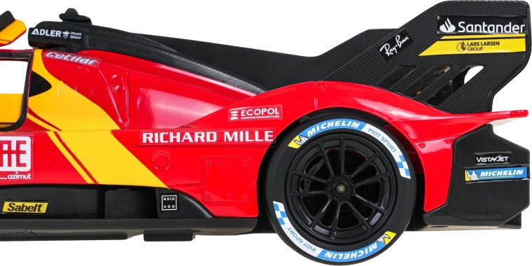 Staňte se jezdcem supersportu a ovládněte trať s modelem FERRARI 499P. Věrné proporce, závodní polepy a charakteristické žluté akcenty podtrhují autentický vzhled. Dálkové ovládání ve stylu volantu Ferrari zajišťuje přesné manévrování doma i venku.