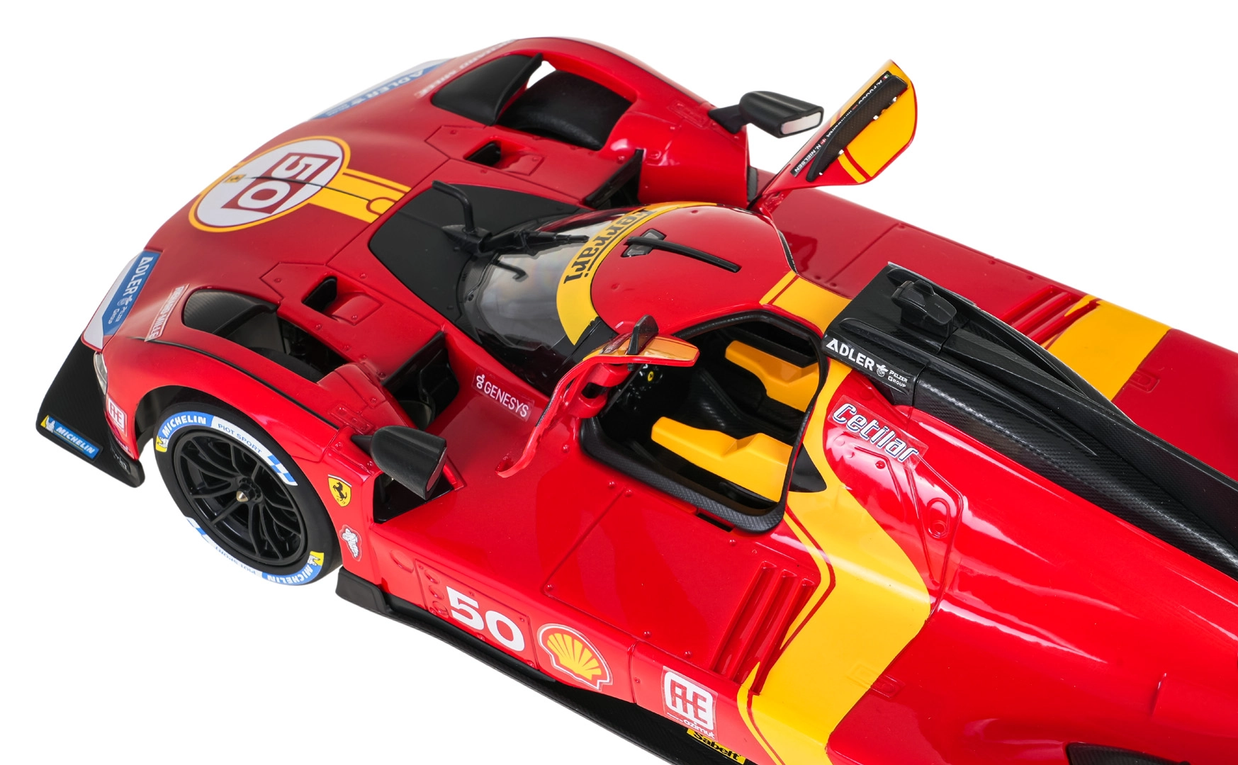 Věrná replika se závodními detaily, aerodynamickými prvky a polepy s číslem 50. Ideální na hraní i do vitríny.