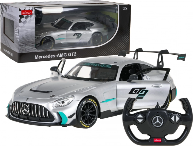 Zažijte realistickou jízdu s oficiálně licencovaným modelem Mercedes‑AMG GT2 v měřítku 1:14 od značky Rastar. Tento precizně zpracovaný RC vůz nabízí jízdu všemi směry, otevírací dveře, LED osvětlení a gumová kola pro skvělou přilnavost. Díky rádiu 2,4 GHz je ovládání plynulé a bez rušení.
