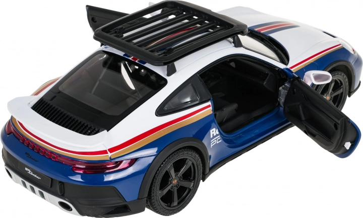 Věrné proporce PORSCHE 911 Dakar, detailní interiér a funkční otevírací dveře pro maximální zážitek z jízdy i vystavení.