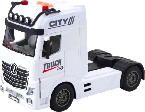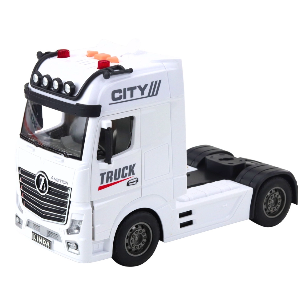 Model je vyroben z kvalitního plastu a díky odnímatelnému návěsu a otevíracím dveřím nabízí mnoho herních scénářů. Jednoduchý ruční pohon, doplněný o světelné a zvukové efekty, zaručuje dlouhou a zábavnou hru doma i venku.