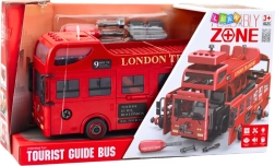 Objevte ikonický červený autobus LONDON TRANSPORT v dětské dílně! Tento detailně zpracovaný model lze snadno rozebrat a znovu složit pomocí přiložených nástrojů. Realistické detaily, světla a zvuky a otevírací dveře přinášejí hodiny zábavy a podněcují představivost.