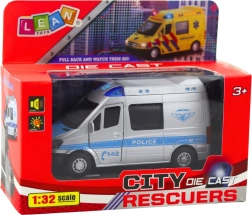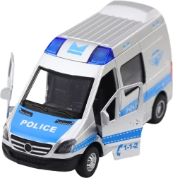 Věrně zpracovaný policejní vůz v měřítku 1:32 kombinuje kovovou karoserii s odolným plastem, díky čemuž je stabilní, bezpečný a připravený na každodenní akci. Stačí vůz natáhnout dozadu a díky pohonu pull back sám vyrazí vpřed. Otevírací dveře umocní realistický zážitek ze hry, zatímco světla a zvuky dodají každému zásahu tu správnou atmosféru.