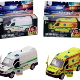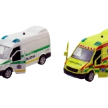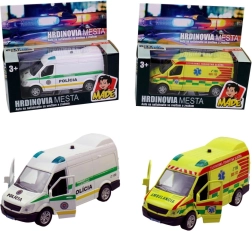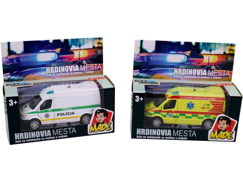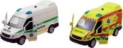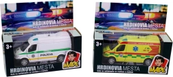 Realistické záchranářské autíčko v provedení ambulance nebo policie přináší spoustu akce do dětské hry. Díky pohonu na zpětné natažení vyrazí vpřed, nechybí mu funkční maják a zvukové efekty. Kvalitní kovovo-plastové zpracování, délka cca 12 cm, ideální pro děti od 3 let.