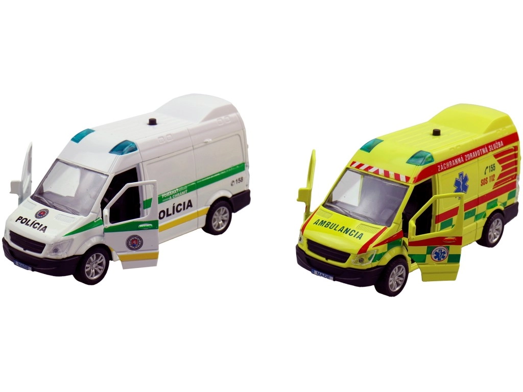 - Autentický vzhled: slovenská sanitka a policejní vůz