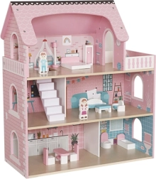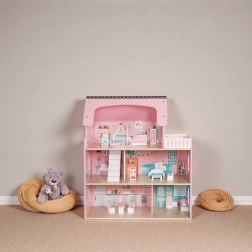 Součástí je kompletní nábytková výbava, takže děti mohou okamžitě zařizovat pokojíčky a rozvíjet fantazii. Výrobek je v souladu s evropskými normami a je vyroben z ekologického dřeva, což z něj dělá odpovědnou volbu pro rodinu i planetu.