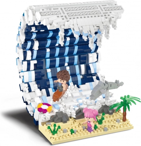 Stavebnice KOCO Surfovací vlna s 1471 dílky, dvěma minifigurkami a scénou s vlnou, delfínem a pláží. Kreativní zábava pro děti od 6 let.