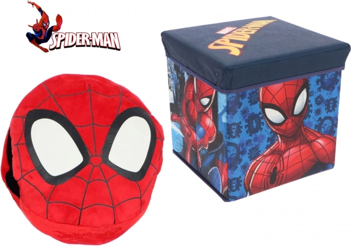 Stylový a praktický úložný box s motivem SPIDERMAN slouží zároveň jako taburet se silným víkem. Díky skládací konstrukci šetří místo, udržuje pořádek v dětském pokoji a pasuje do většiny dřevěných organizérů. Maximální nosnost víka 80 kg zajistí pohodlné sezení, objem 27 l pojme hračky, knihy i drobnosti.