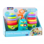 Interaktivní váha ve tvaru roztomilého lvíčka učí děti principům vážení a rovnováhy. Ramena se houpají podle počtu a hmotnosti položených kroužků, což přirozeně rozvíjí logické myšlení a základní matematické pojmy. Barevné dílky různých velikostí vybízejí k třídění, porovnávání a skládání.