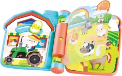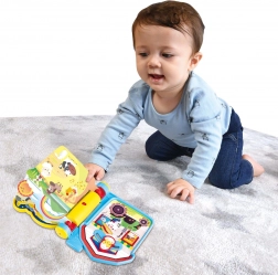 Objevte první čtení plné zábavy! Tato interaktivní plastová knížka na baterie propojuje učení a hru: otáčejte stránky, hýbejte zvířátky a poslouchejte veselé melodie. Díky odolnému provedení, jasným barvám a snadnému ovládání rozvíjí jemnou motoriku, smysly a zvědavost dětí už od 6 měsíců. Baterie 2× AAA jsou součástí.