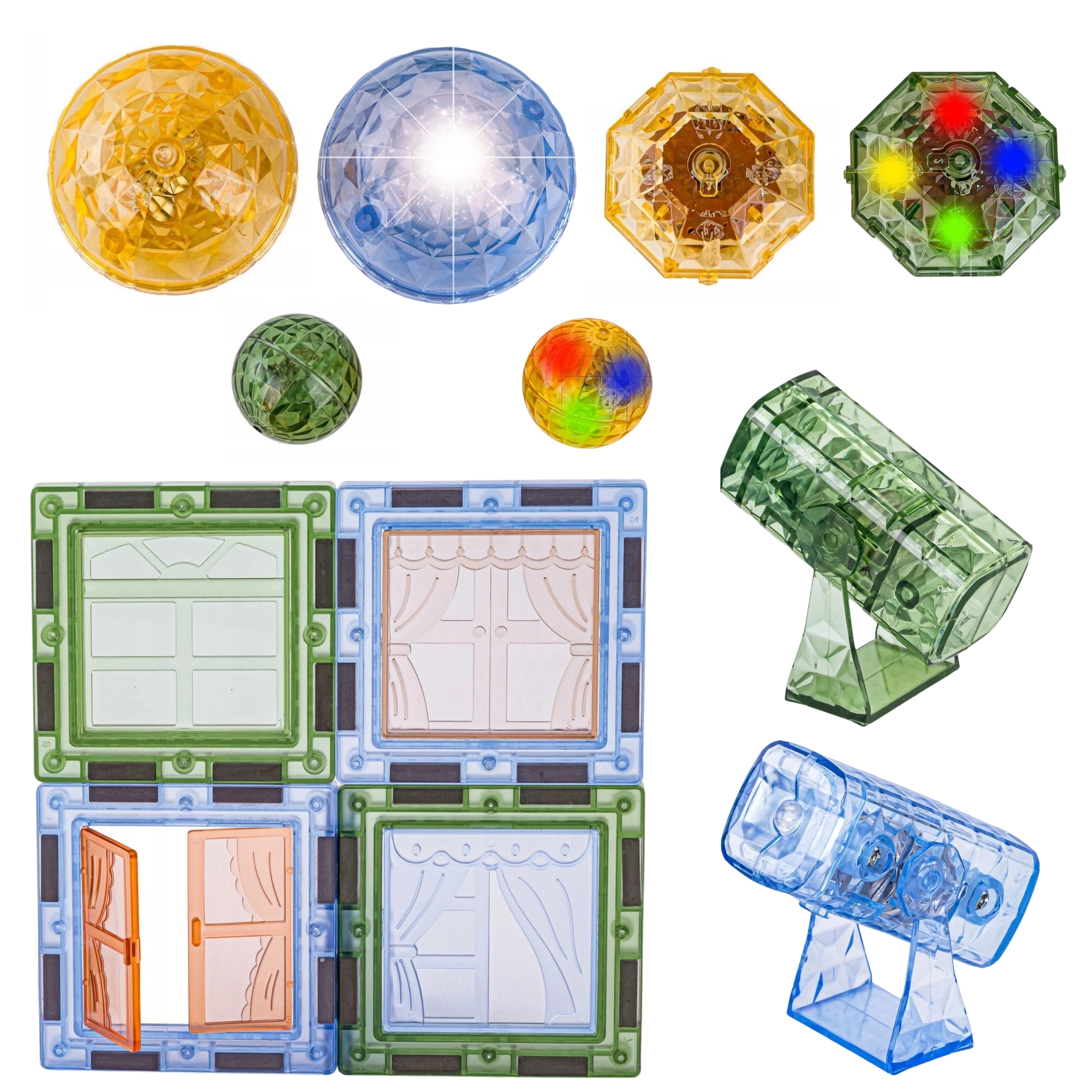 - 124 dílů včetně různých tvarů (čtverce, trojúhelníky, okna, střechy)