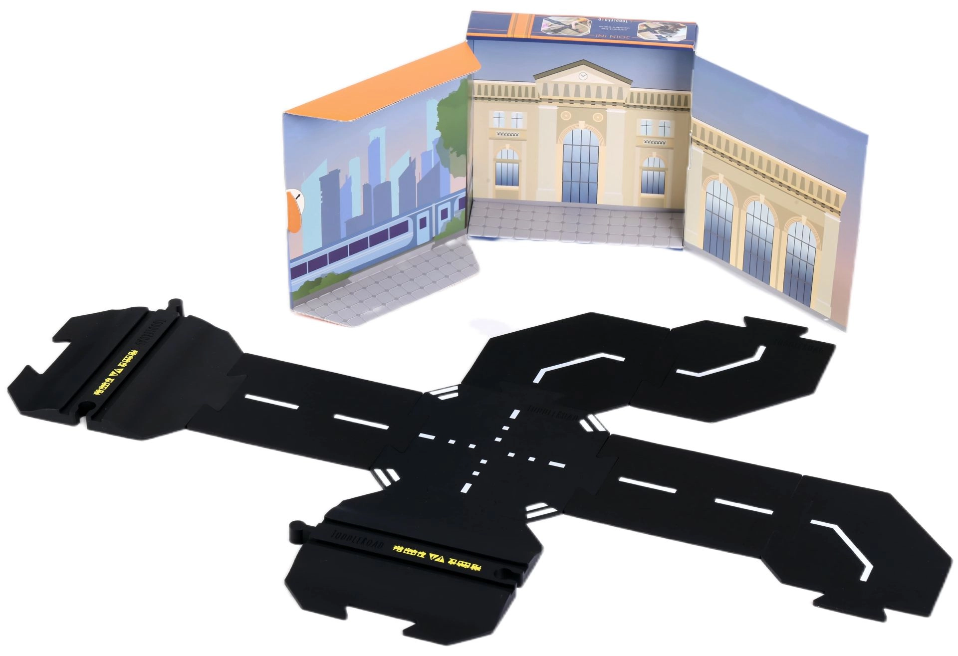 Tato větší rozšiřující sada od Toddleroad přináší železniční přejezd, který umožňuje propojit silniční sady Město nebo Metropole s oblíbenými dřevěnými kolejemi. Díky kompatibilitě s BRIO a MAXIM děti jednoduše přejedou autíčkem přes koleje a rozšíří své herní scénáře. Oboustranný díl s malým kruhovým objezdem a X křižovatkou přidává další směry a manévry, takže i menší sety získají nové možnosti.