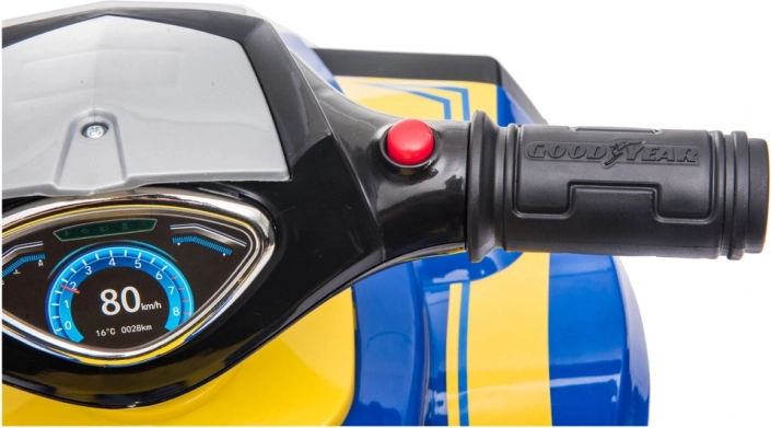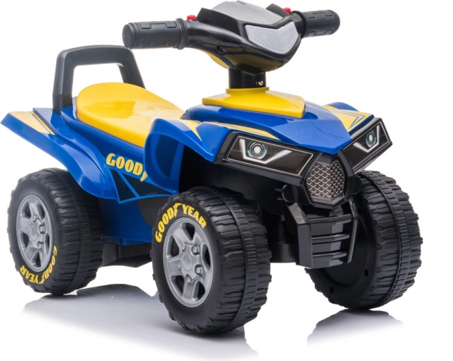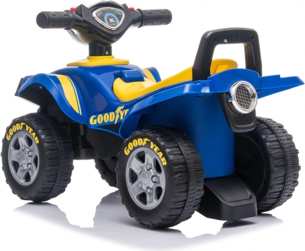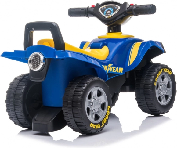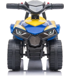 Toto stylové modré odrážedlo ve tvaru čtyřkolky podněcuje k aktivnímu pohybu a přináší dětem radost z každé jízdy. Díky realistickým zvukům motoru a předním světlům je zážitek ještě atraktivnější a blíží se skutečnému řízení.