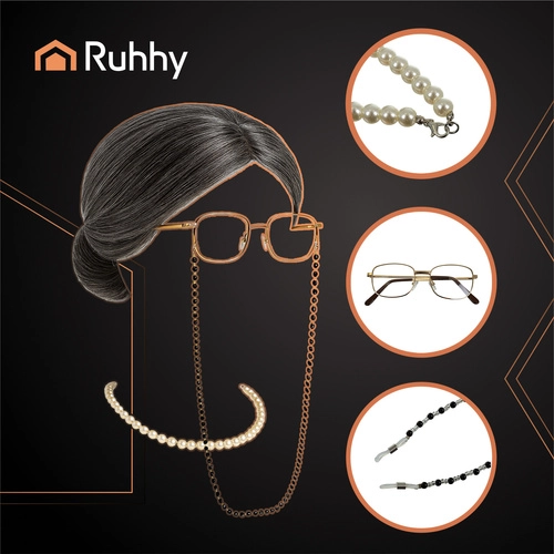 Vytvořte nezapomenutelný retro look během chvilky. Kostým babičky RUHHY kombinuje autentický vzhled s pohodlím – šedá paruka s čepcem drží účes na místě, brýle na řetízku dodají charakter a perlový náhrdelník přidá nádech elegance. Skvělé řešení pro karneval, Halloween i divadelní vystoupení.
