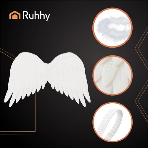 Tato 2dílná sada RUHHY zahrnuje bílá andělská křídla a pružnou čelenku s aureolou. Křídla mají lehkou konstrukci s peříčkovým povrchem imitujícím skutečná pírka, takže působí jemně a elegantně. Díky elastickým popruhům je snadno nasadíte a bezpečně drží i při delším nošení.