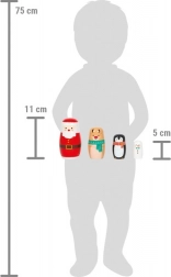 Rozkošná sada dřevěných matrjošek s motivy Santy, soba, tučňáka a sněhuláka přináší sváteční atmosféru do každého domova. Děti i dospělí si užijí skládání a vkládání figurek podle velikosti, které podporuje jemnou motoriku, koordinaci ruka–oko a soustředění. Hračka je zároveň stylovou vánoční dekorací do dětského pokoje i obývacího prostoru.
