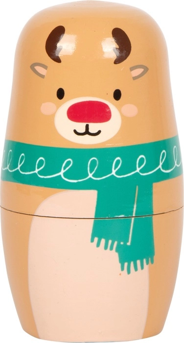 Objevte kouzlo Vánoc s dřevěnou sadou matrjošek SMALL FOOT. Barevně lakované postavičky se hladce otevírají a menší kusy se zasouvají do větších. To povzbuzuje děti k objevování, procvičování trpělivosti a rozvíjení jemné motoriky.