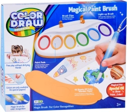 Kouzelný štětec Color & Draw LED nahrazuje klasické barvy a vodu bezpečným světlem. Dítě zvolí barvu na základně s barevnými podložkami a přenese ji na přiložené speciální papíry – barvy se po chvilce rozzáří a obrázek ožije. Kreativní, čisté a intuitivní malování podporuje fantazii i jemnou motoriku.